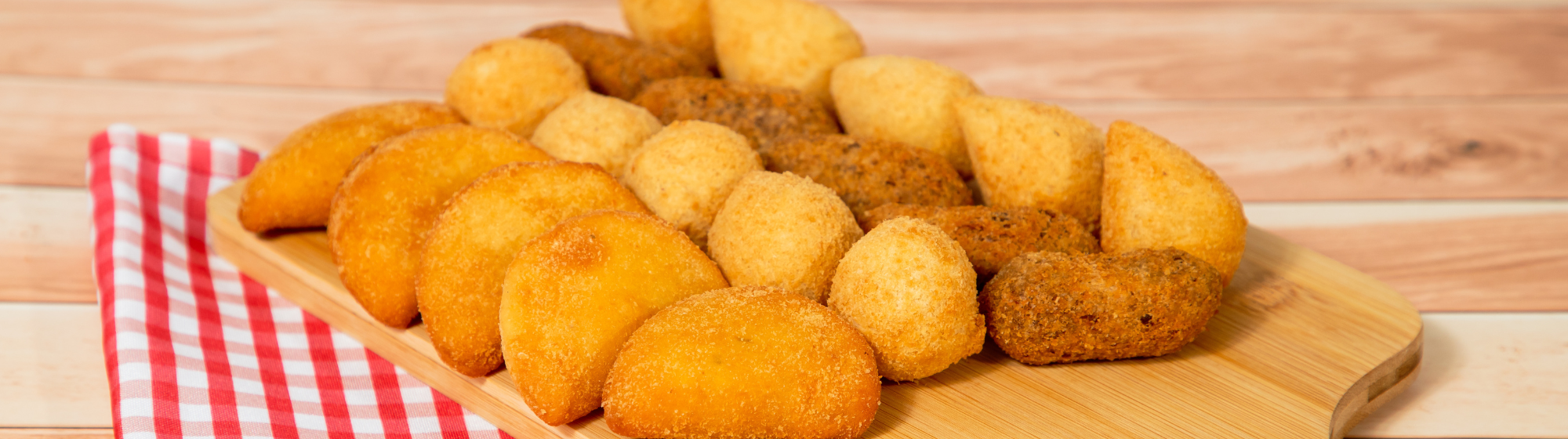 Sabores: brócolis, carne, frango, presunto e queijo, queijo e palmito.