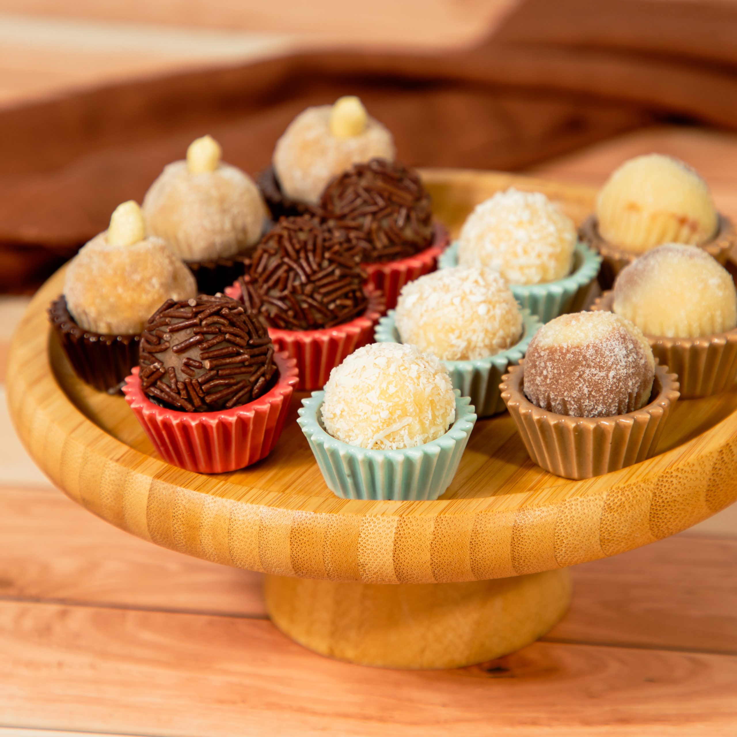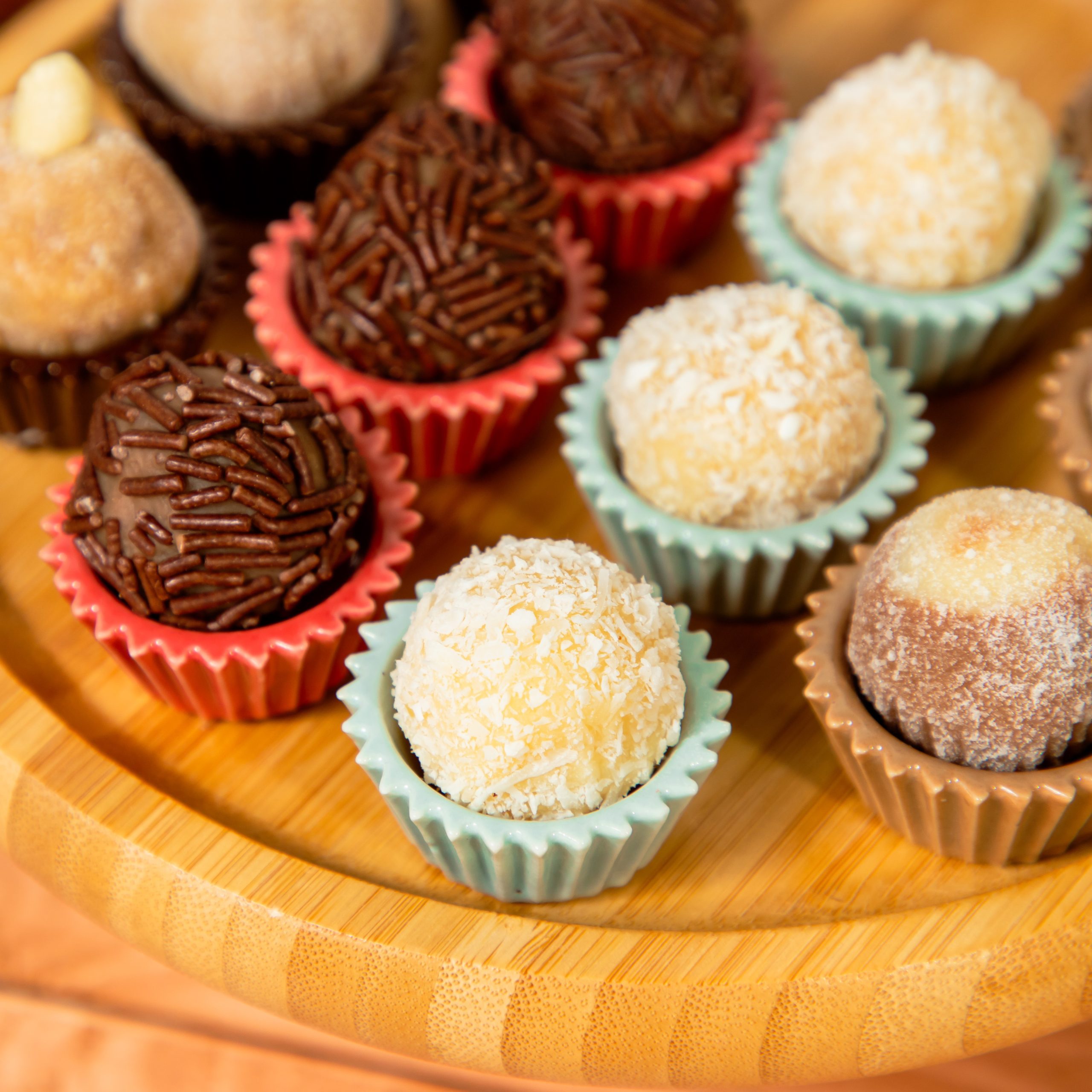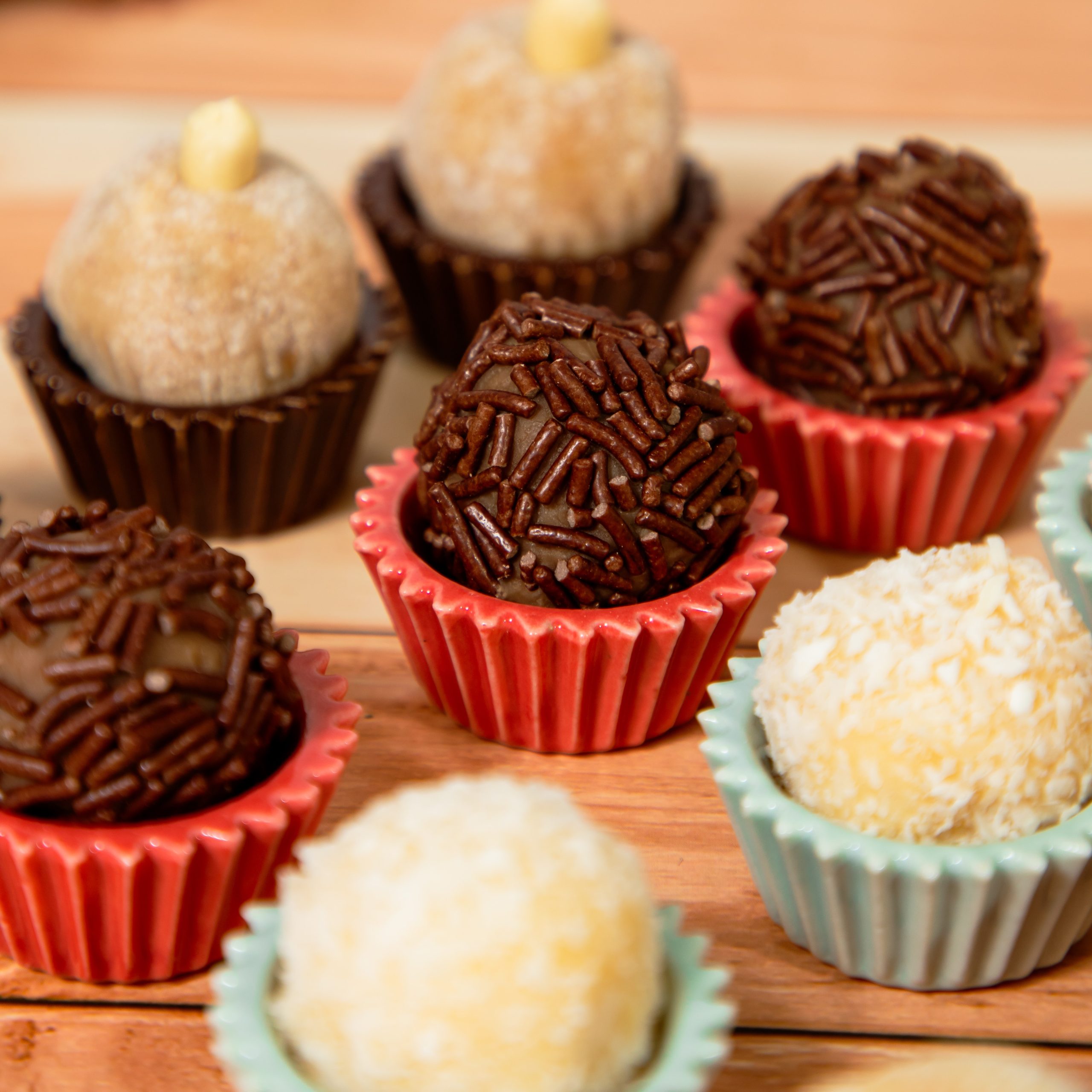 Sabores: chocolate branco, chocolate preto, creme, doce de leite.