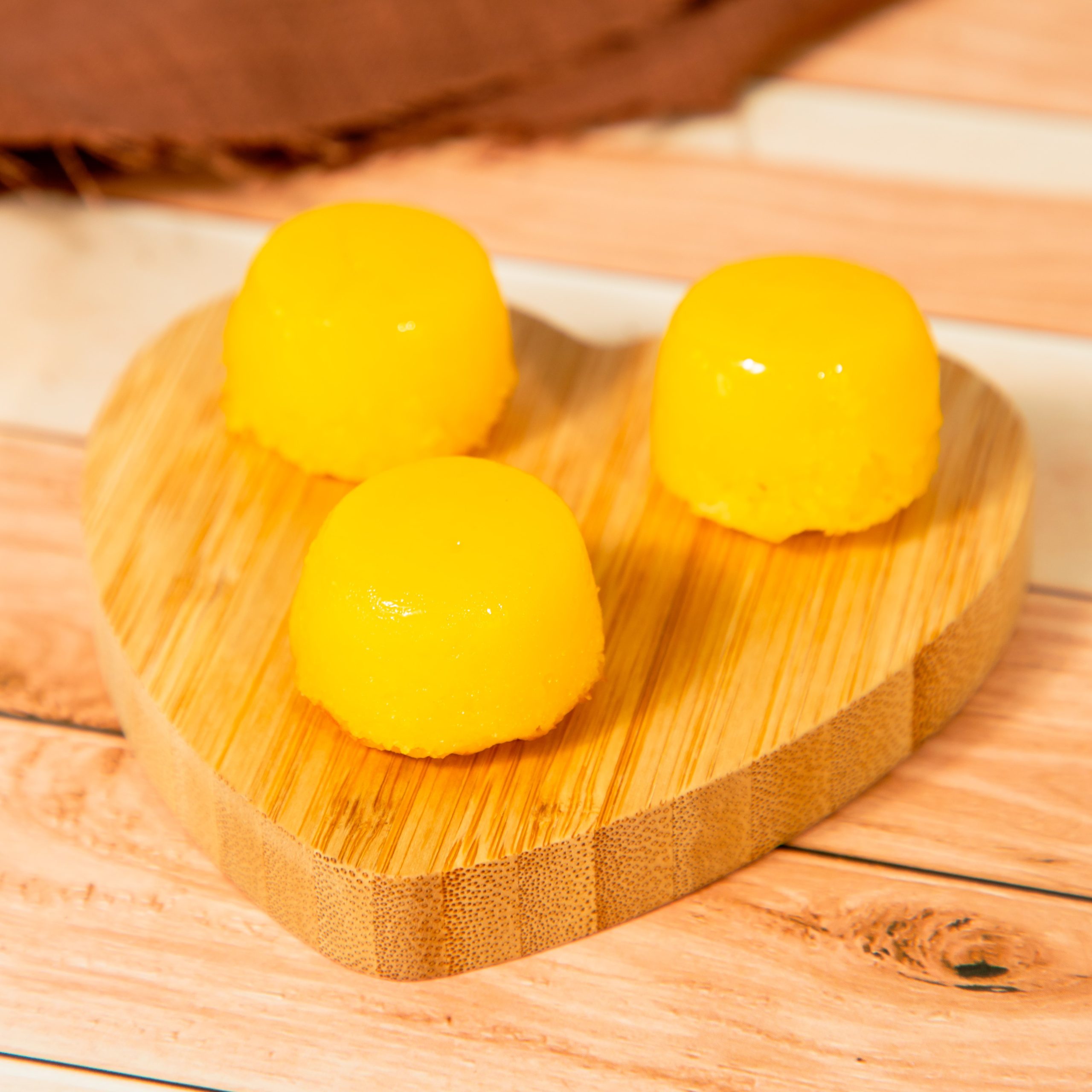Sabores: chocolate branco, chocolate preto, limão, maracujá, morango.